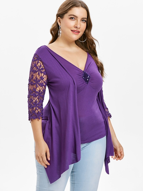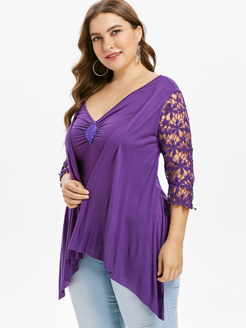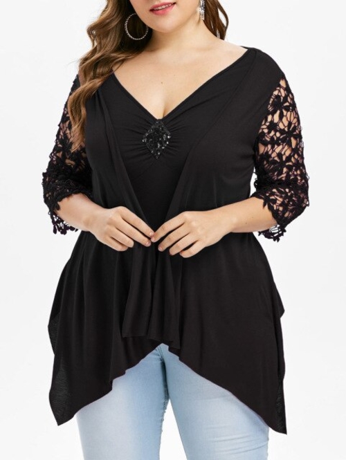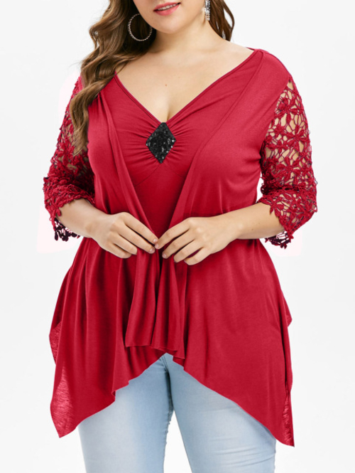 Model Number: 20190121 Plus Size Faux Twinset Asymmetrical T-shirt