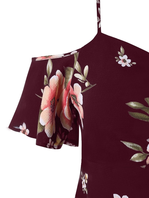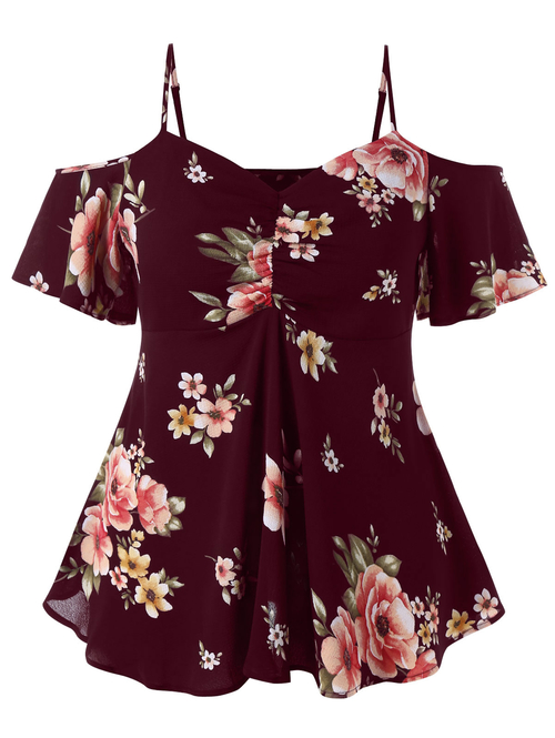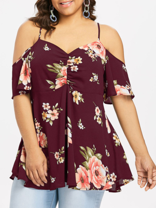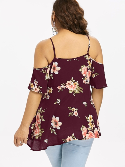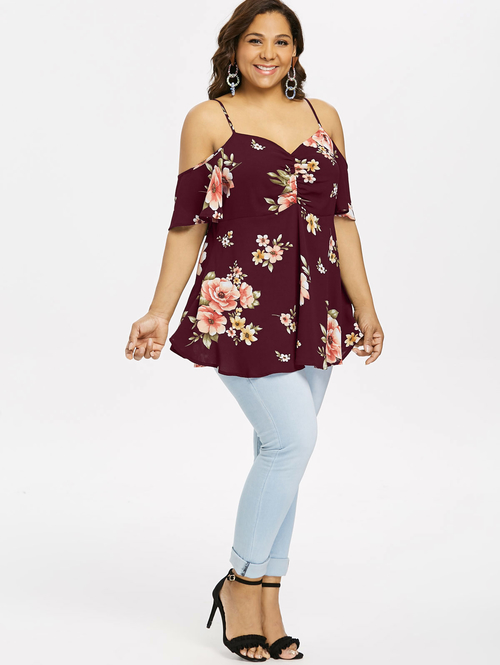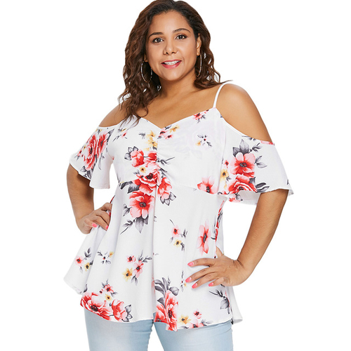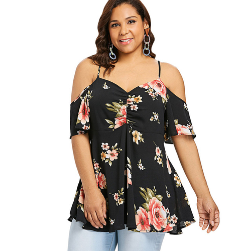 Model Number: Plus Size Floral Open Shoulder Blouse 20190104