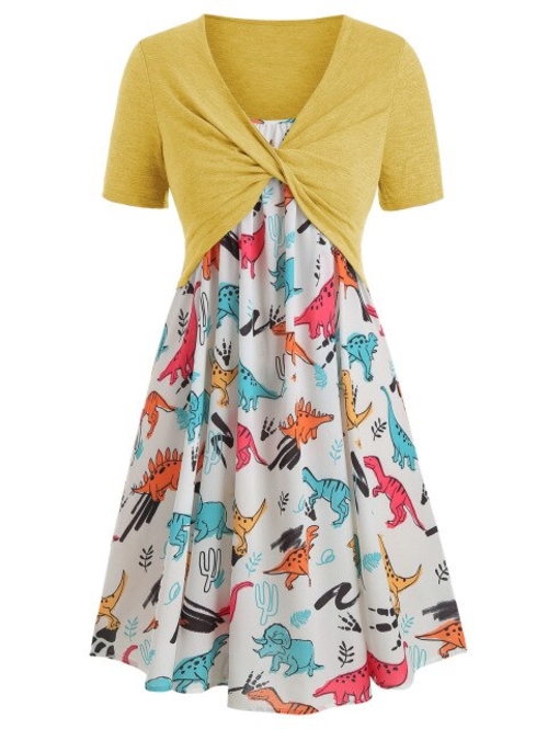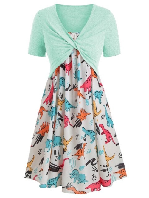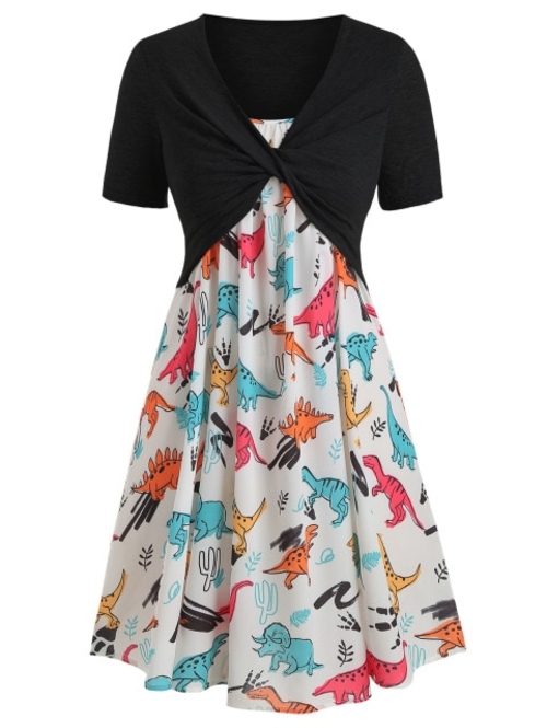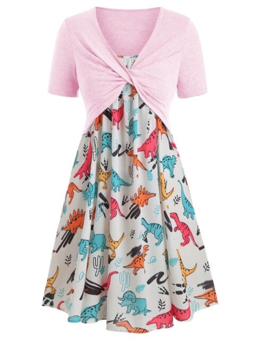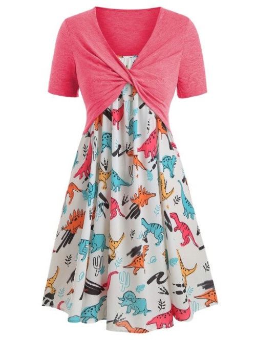 Model Number: Plus Size Dinosaur Print Twist Two Piece Dress 20190409
