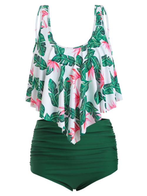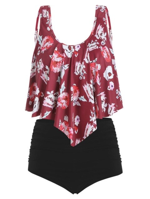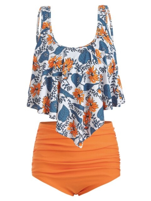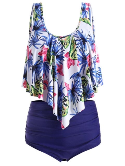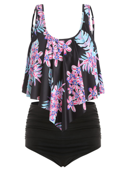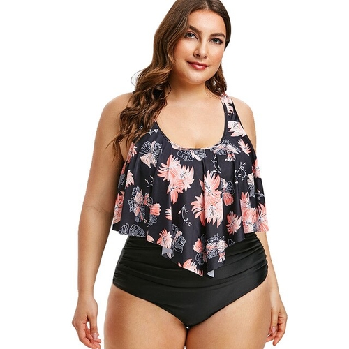 Model Number: 20190515 Floral Print Plus Size High Waist Tankini Set