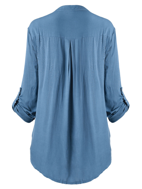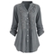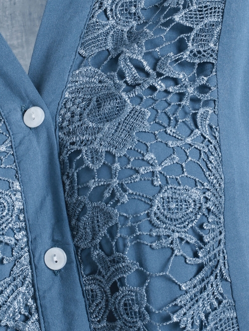 Plus Size Lace Crochet Roll Up Sleeve Shirt