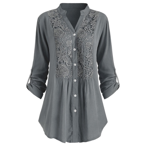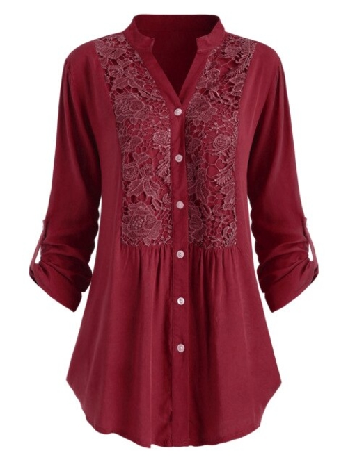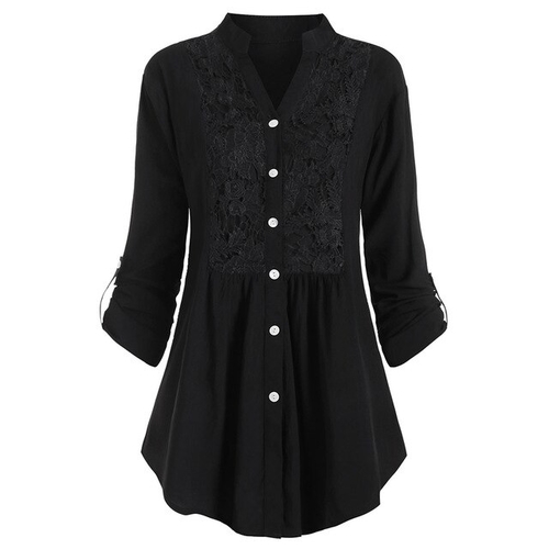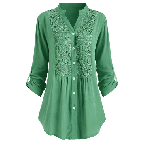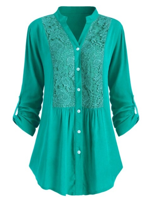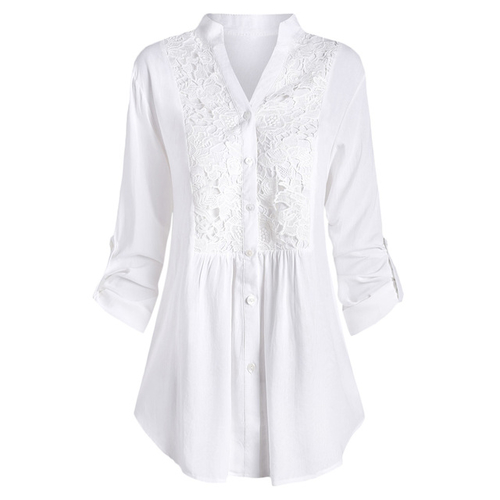 Dropship Plus Size Lace Crochet Roll Up Sleeve Shirt