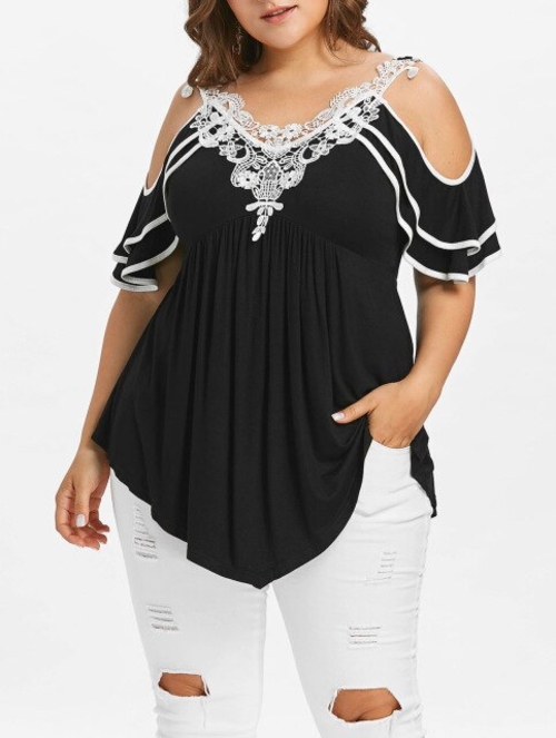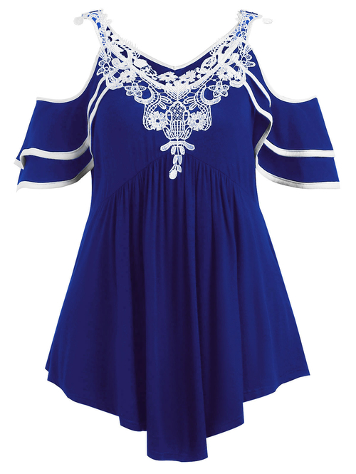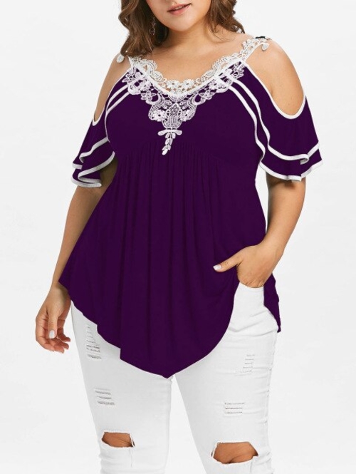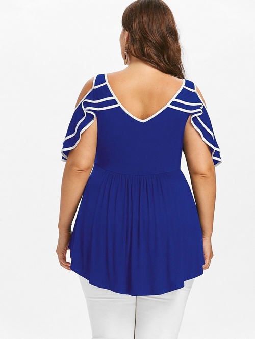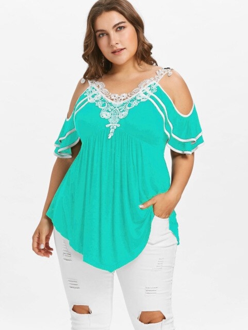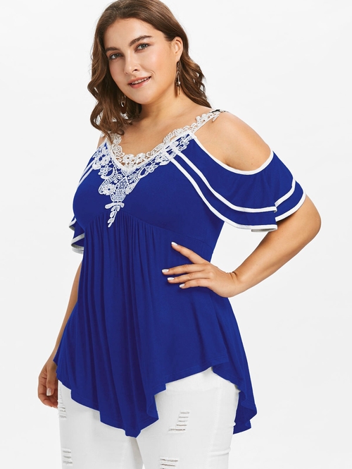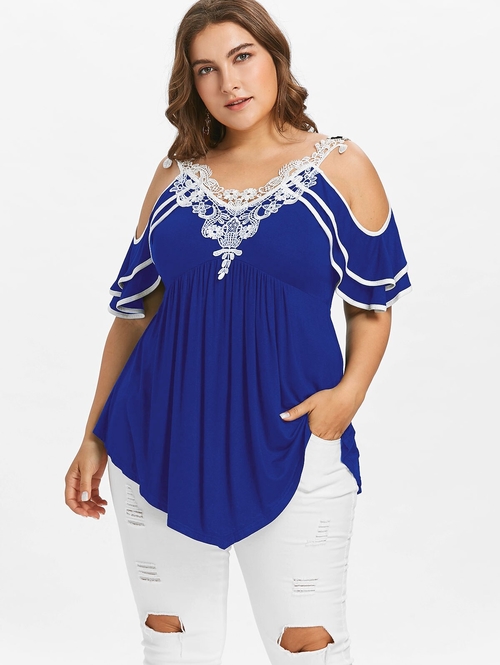 Model Number: Plus Size Layered Cold Shoulder T-shirt 20180501
