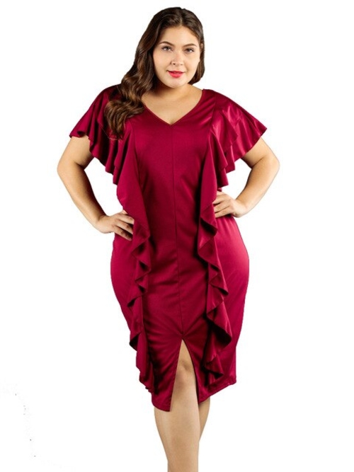 Model Number: 20190301 Plus Size Ruffled V Neck Bodycon Dress