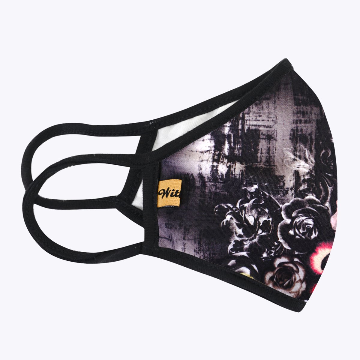 Poison Rose 3-Layered Face Cover featuring a unique floral print design, made with polyester and cotton for comfort and protection.