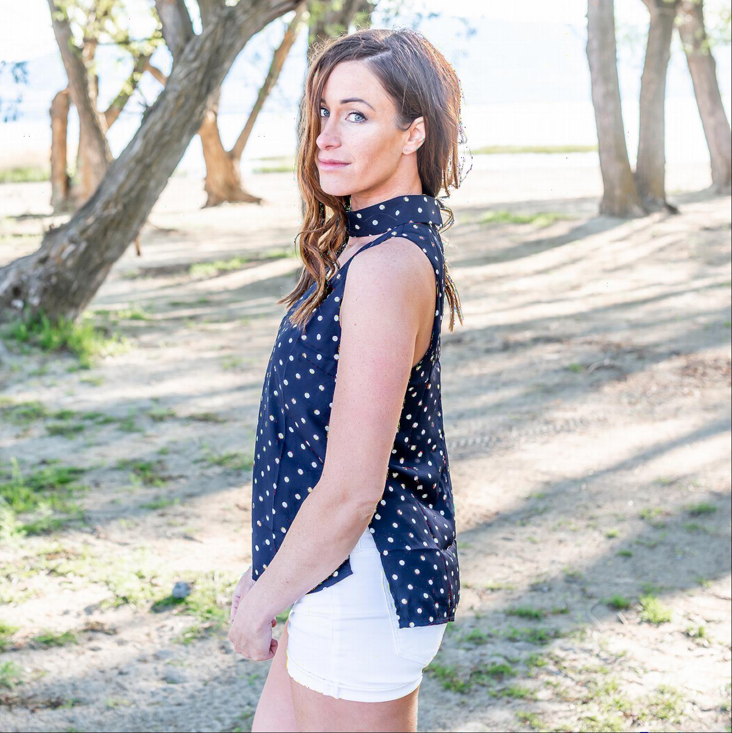 The polka dot pattern adds a playful touch to the blouse, making it perfect for both casual outings and professional settings. The sleeveless design allows for easy layering, whether you choose to wear it alone or under a blazer for a polished look. The demure side slit enhances the blouse's silhouette, offering a modern twist to a classic style.