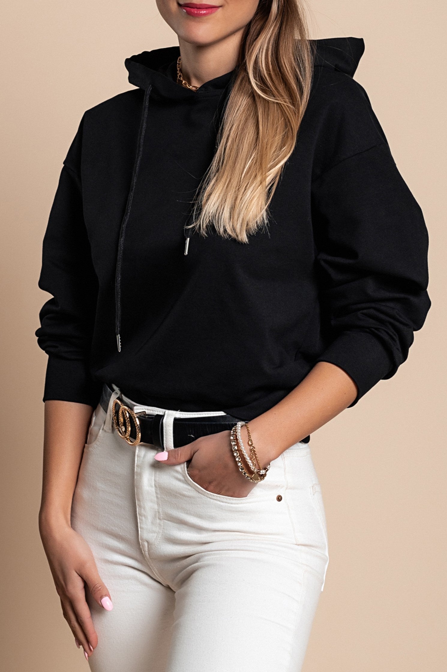Dropship Športna majica s kapuco Rionna, črna