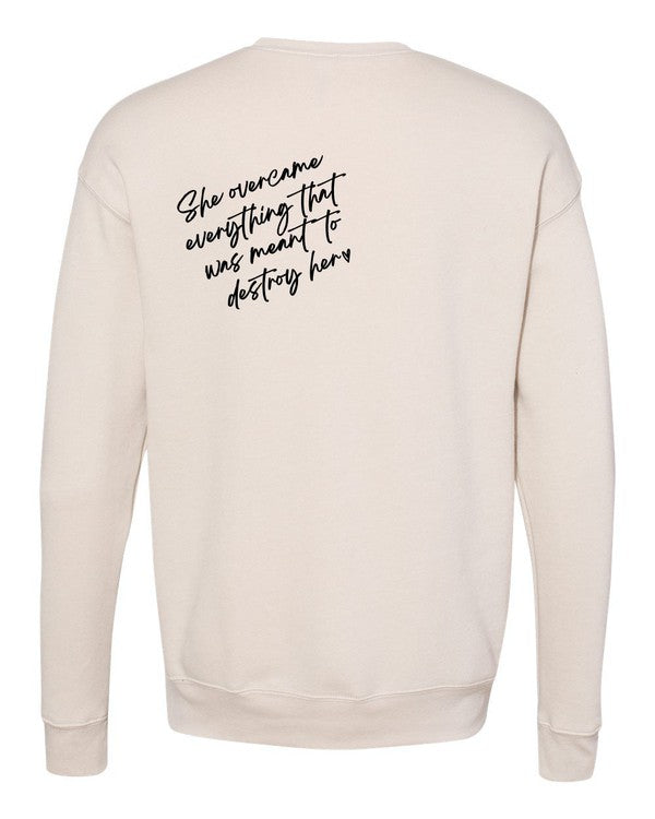 Choosing the Powherful... She Overcame Everything Sweatshirt means embracing a lifestyle of empowerment and positivity. It’s not just about fashion; it’s about making a statement and inspiring others. Wear it proudly as a reminder of your strength and resilience, and encourage those around you to do the same.