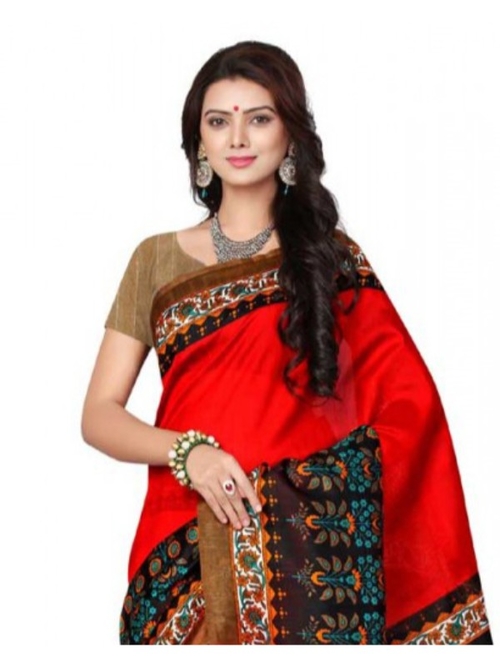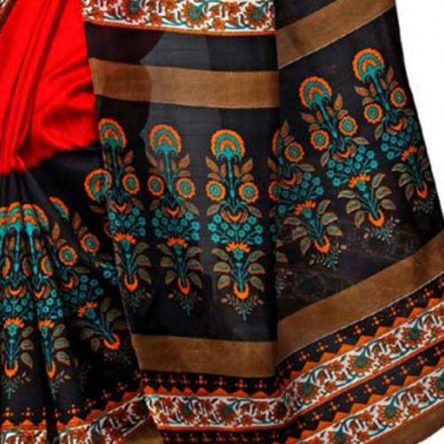 Printed Bhagalpuri Art Silk Red with Black color Saree