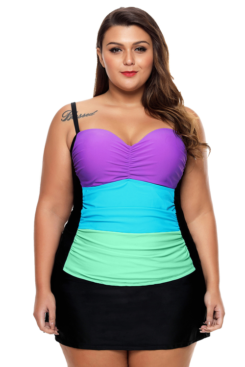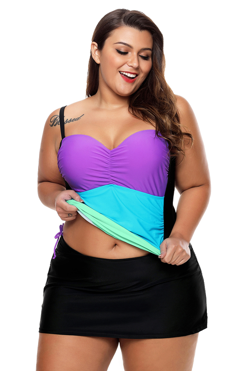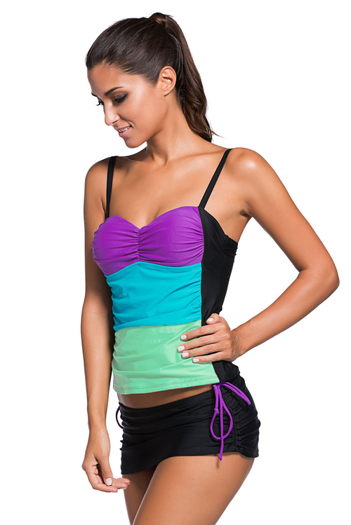 When hot summer days call for pool perfect swimsuits we have exactly what a diva like you is looking for. Take a dive into this two-piece tankini, boasting a fun bold color matching design, lightly padded and underwired, adjustable shoulder straps, and matching swim bottoms finished off with a sexy skort finish, for a worthy fun in the sun look. From summer days through to summer nights this set is sure to have you looking your fabulous best!