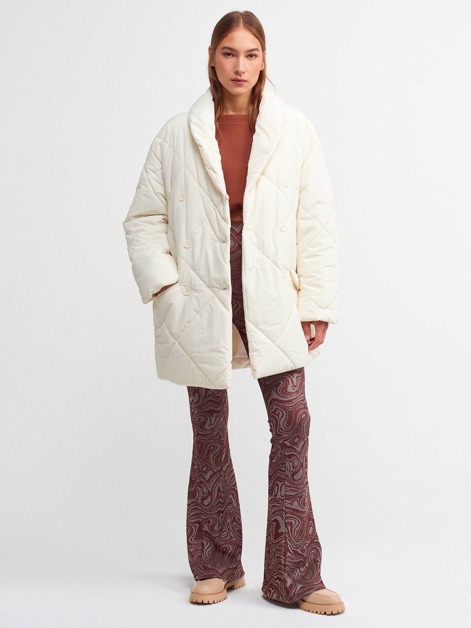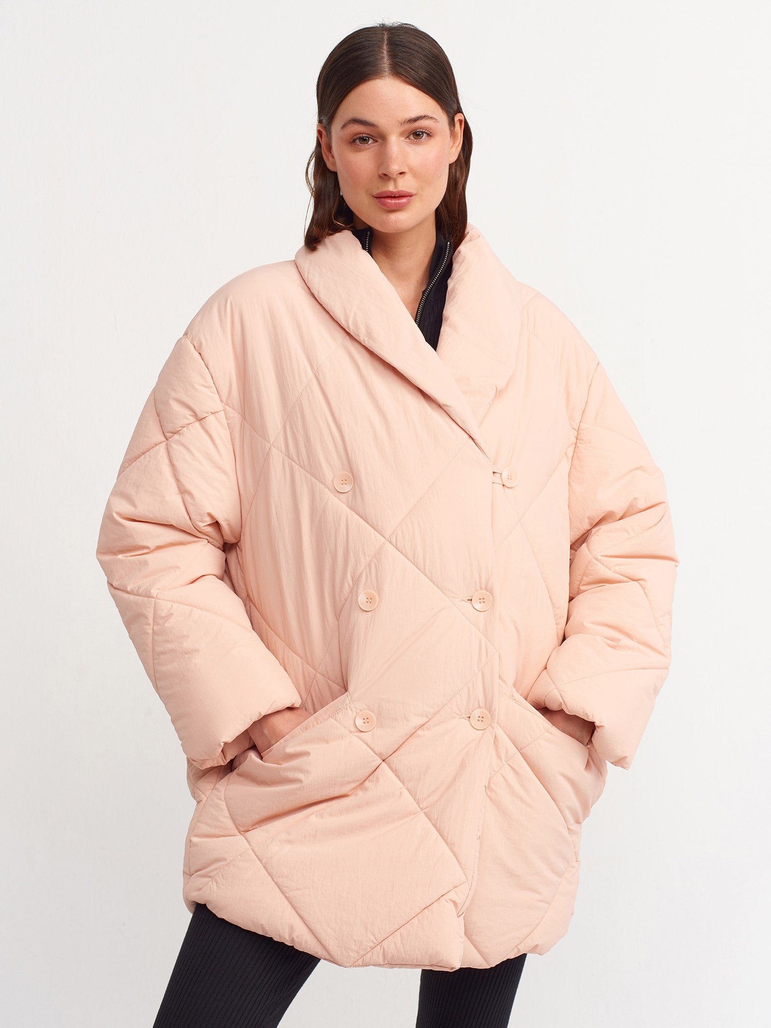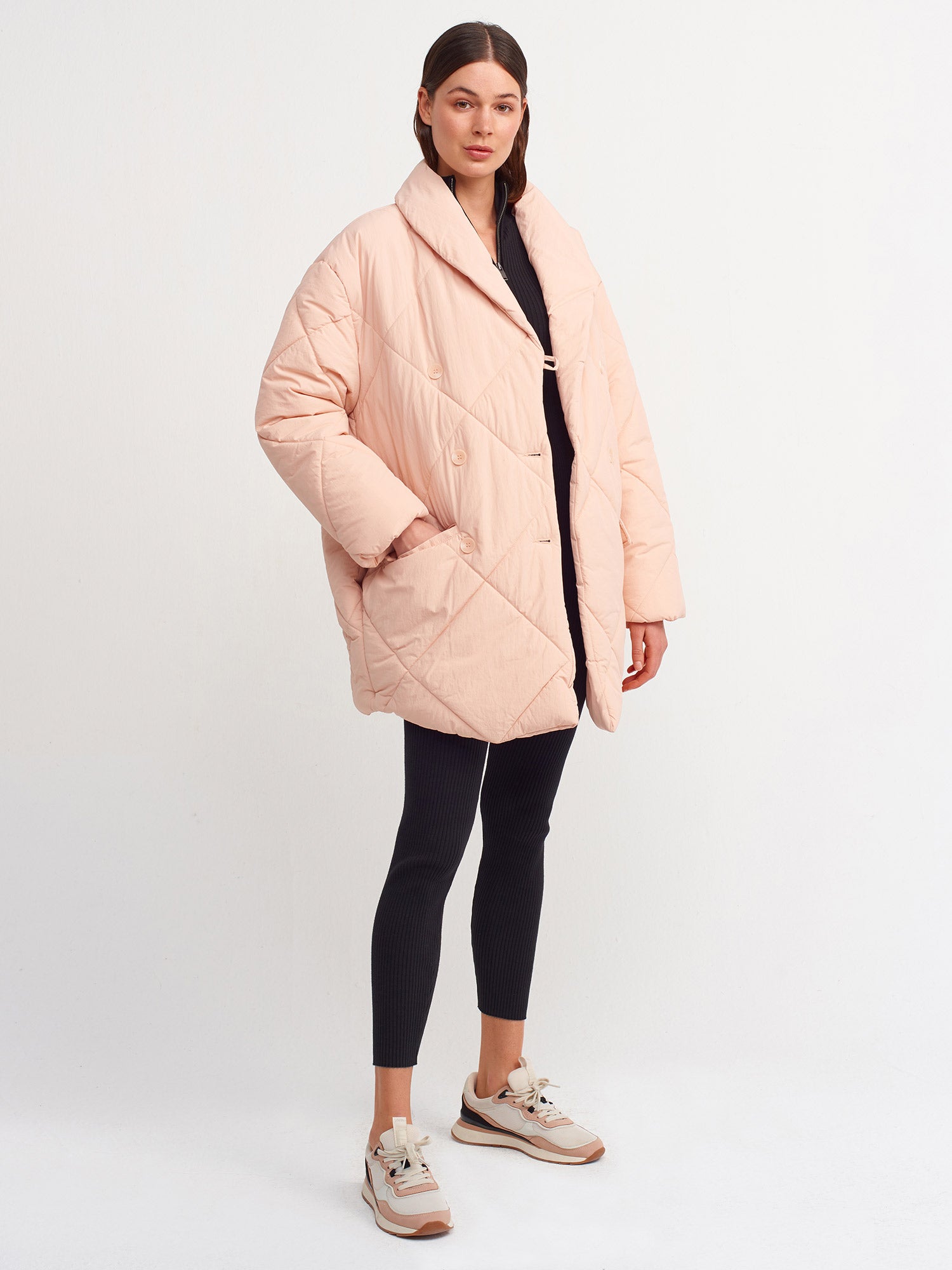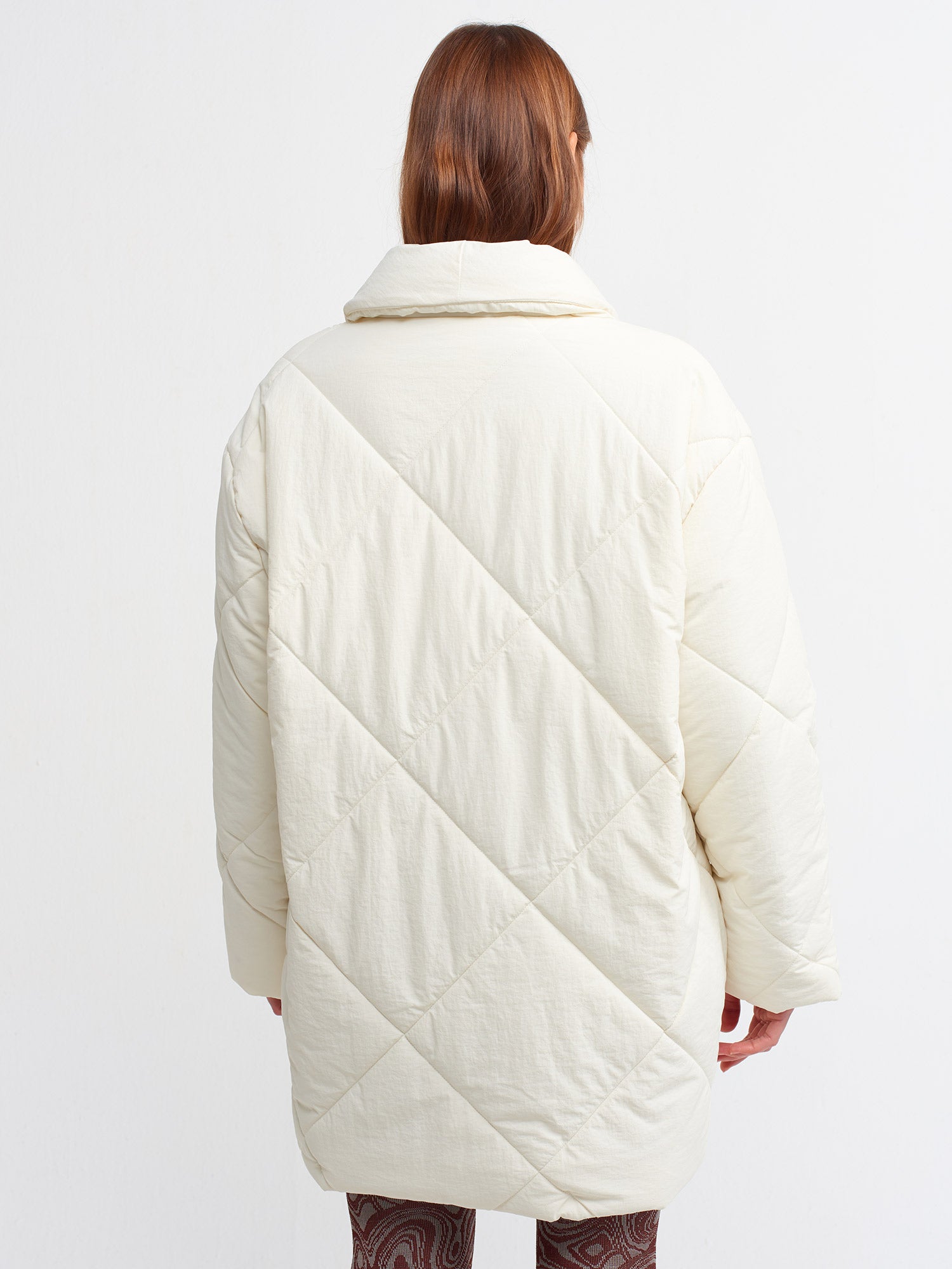 This versatile quilted coat can be paired with a variety of outfits. For a casual look, wear it over a simple t-shirt and jeans. For a more polished appearance, layer it over a dress or tailored trousers. Accessorize with a scarf and boots to complete your ensemble. The neutral color palette of the coat allows for easy coordination with other wardrobe pieces.