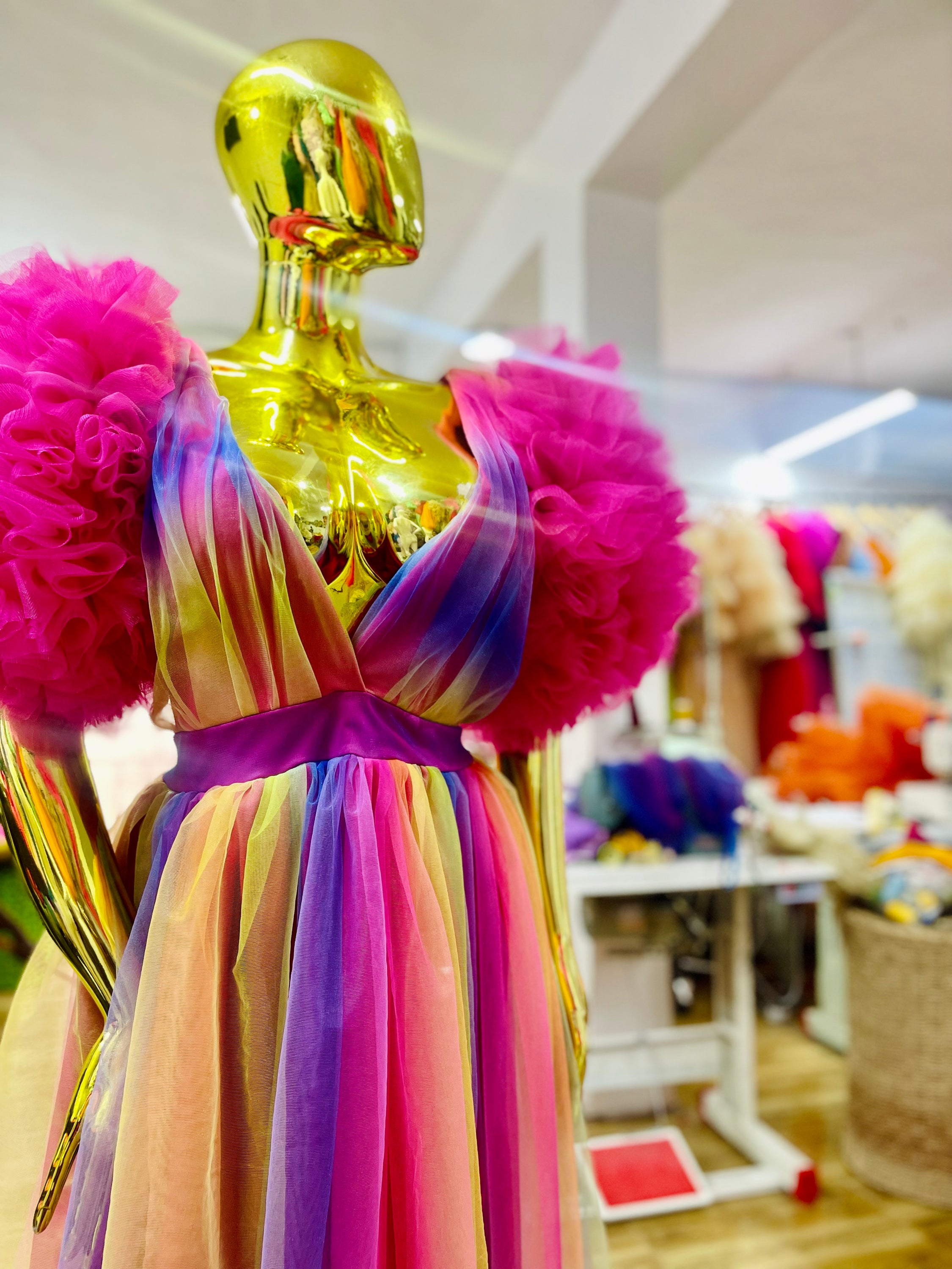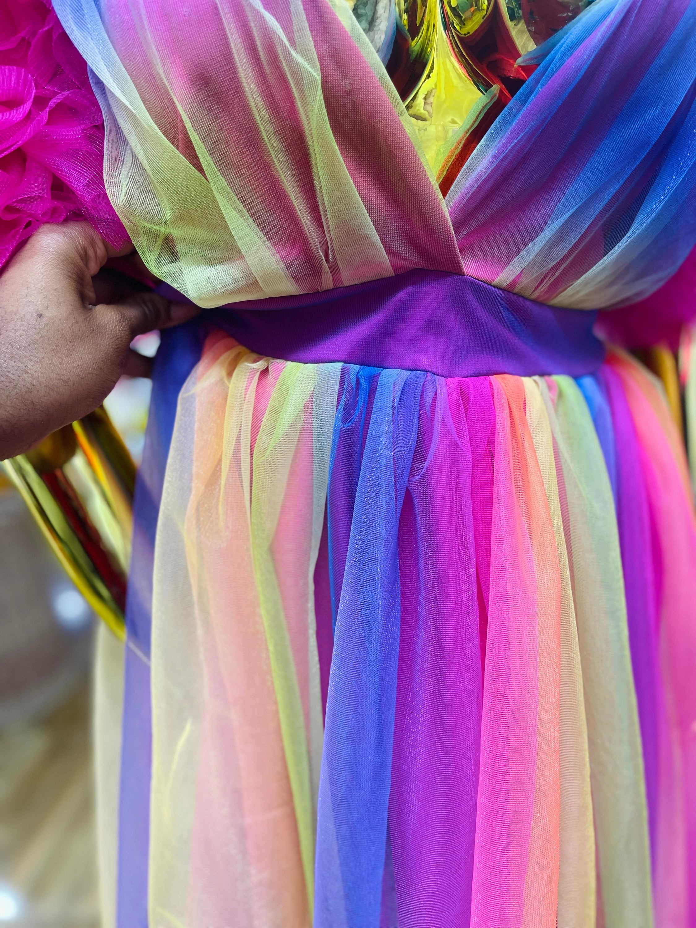 Choosing the Rainbow Ixora Dress means opting for quality and style. Made from high-quality materials, this dress is not only beautiful but also durable. The cotton candy puff ruffle sleeves add a unique touch that sets it apart from other dresses on the market. Additionally, the slit design enhances the overall look, making it a must-have for any fashion-forward individual.