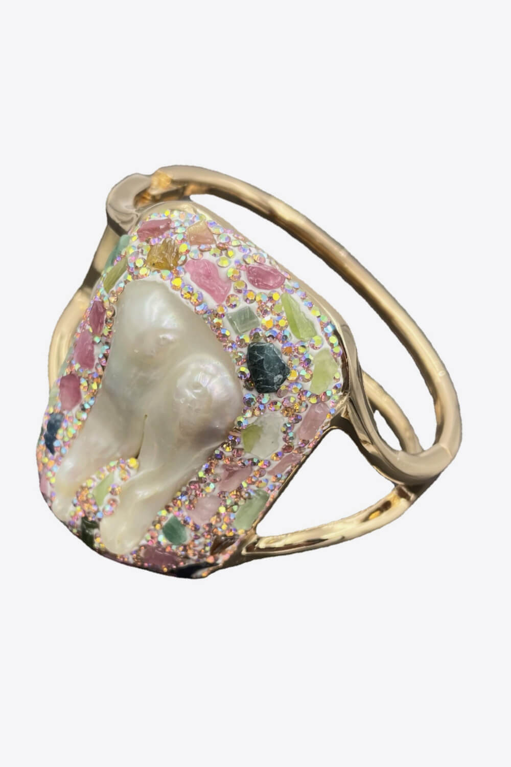 Introducing the exquisite Random-Shape Natural Stone Brass Bracelet, a stunning piece of jewelry that combines elegance and modernity. This bracelet is designed for those who appreciate minimalist aesthetics while wanting to make a fashion statement. Crafted with high-quality materials, including fresh water pearls and tourmaline, this bracelet is not just an accessory; it's a reflection of your unique style.