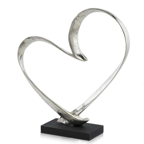 The heart shape symbolizes love and passion, making this sculpture a perfect gift for loved ones or a beautiful addition to your own home. Its raw silver and black finish adds a modern touch, allowing it to blend seamlessly with various interior styles. Whether placed on a shelf, table, or as a centerpiece, it is sure to catch the eye of anyone who enters the room.