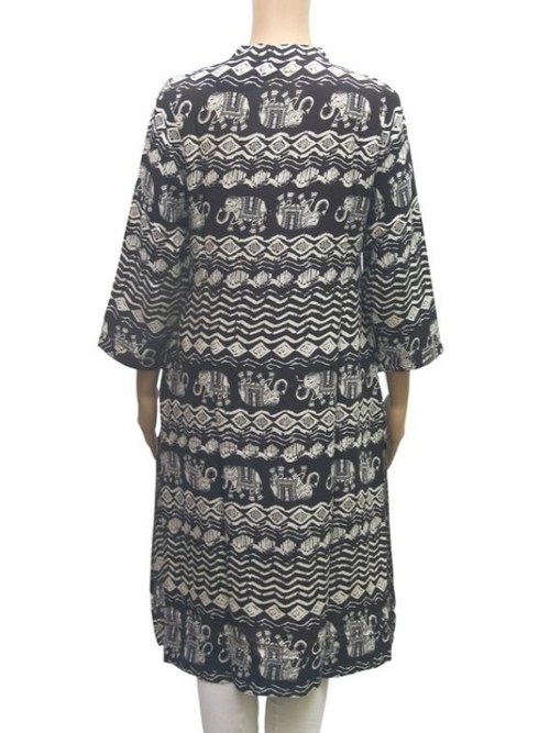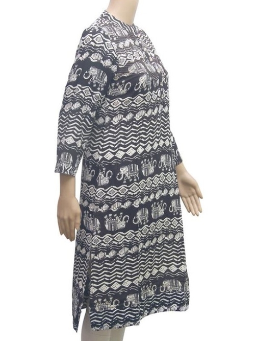 Elephant Printed Rayon Women Kurti. It looks stunning with Contrasting leggings.Packed neck with 3/4th sleeves add more to its beauty. Beautifully printed front & back panel, perfect for causal and formal wear