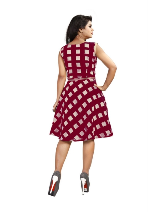 Red Color American Crepe Western Dress
