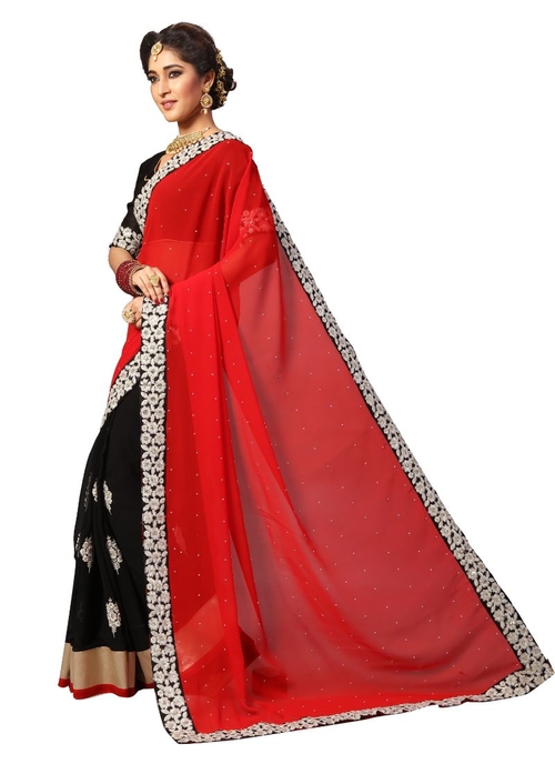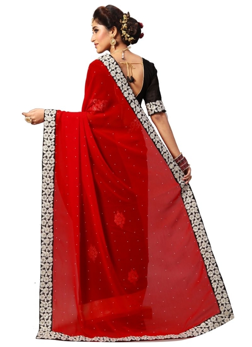 Red Color Georgette Saree with Blouse.