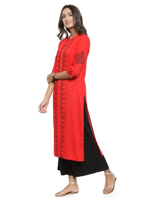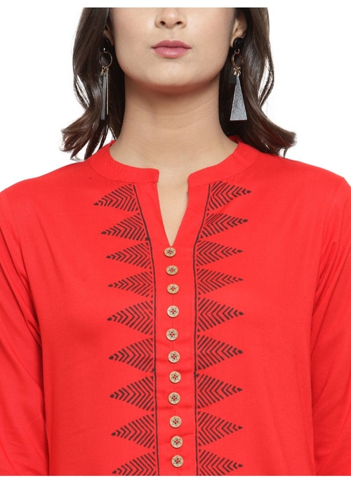 Red Color Rayon Kurti, Color : Red, Material : Rayon Disclaimer: The color of actual product may vary slightly from the images provided due to photographic lighting conditions and difference in screen resolutions
