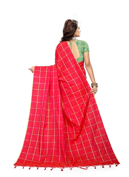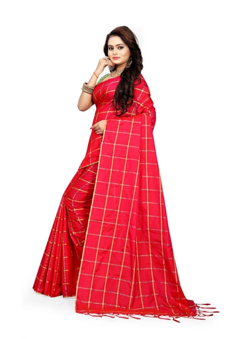 Red Color Sana Checks Saree.
