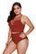 Get on point with your swimwear look with this high neck bikini top that features strappy detailing at the front and an adjustable straps can be worn straight or crossed. Carefully underwired for better push-up effect with soft sponge cups. And hide some tummy but show off your hips in the matching bottom. It has a high waist and delicate pleated detail. A flattering look in the two-piece bathing suit.