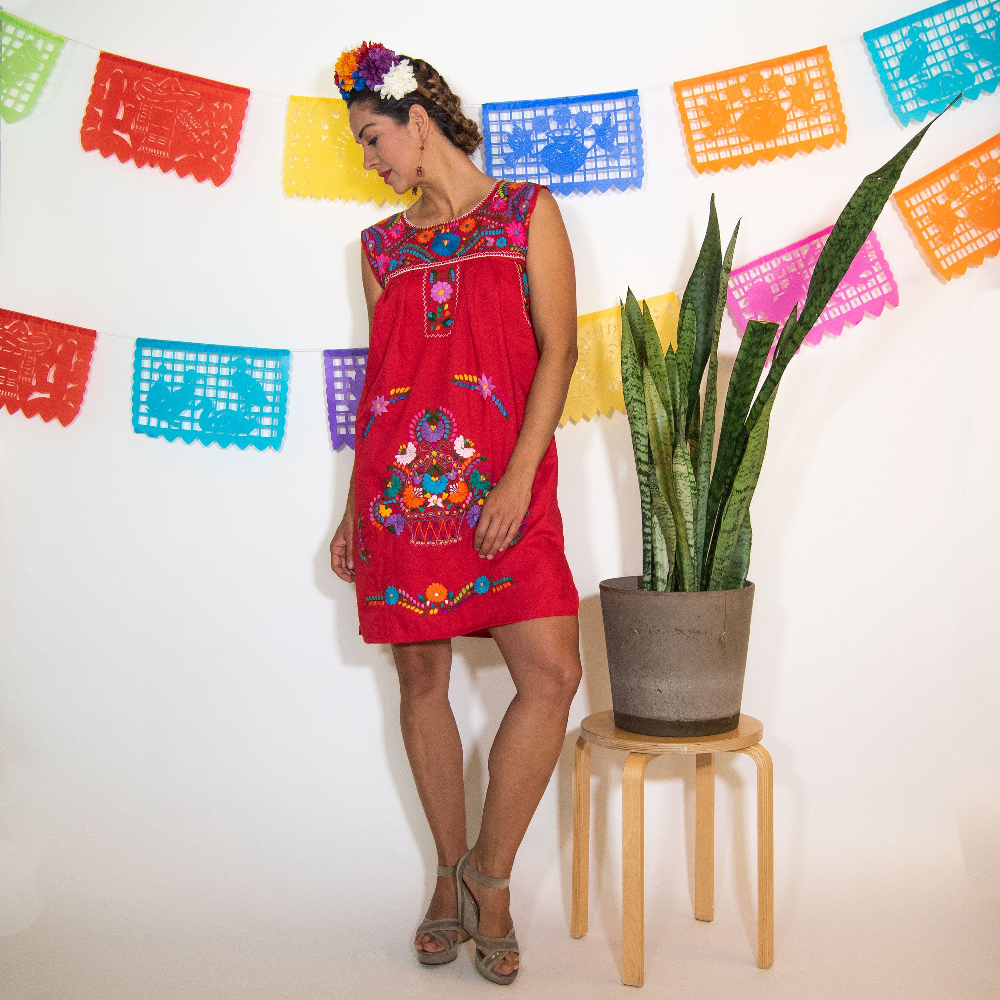 Introducing our stunning Red Vintage Dress with Hand Embroidered Flowers, a beautiful piece that embodies the spirit of traditional Mexican craftsmanship. This handmade dress is not only a fashion statement but also a celebration of culture and artistry. With its vibrant red color and intricate floral embroidery, this dress is perfect for any occasion, whether you're dressing up for a summer outing or layering it for a cozy winter look.