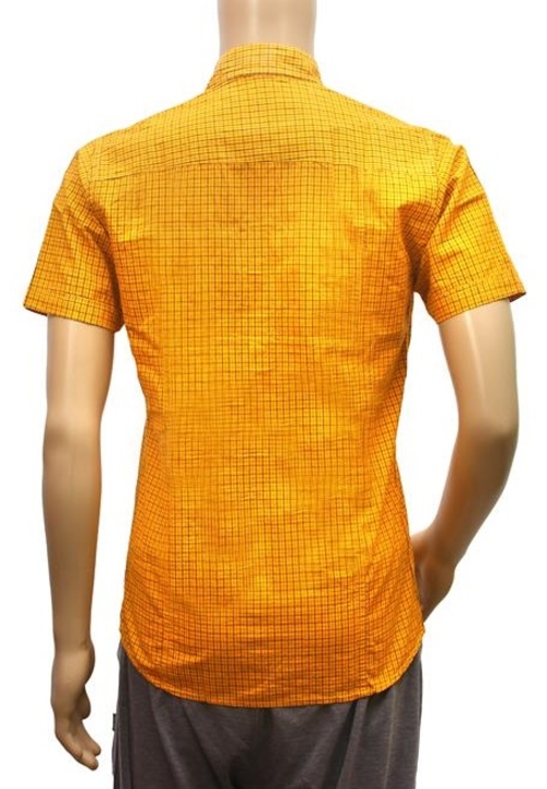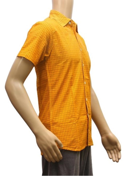 Embroidery Above Pocket, shirt is yellow color, Regular neck type , size is 40 Color : Yellow Size : L Breadth : 40 Length : 29 Material : Cotton Neck Type : Regular Sleeve Type : Half Sleeve Style : Casual Occasion : Regular