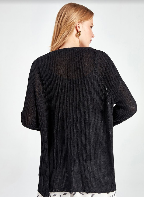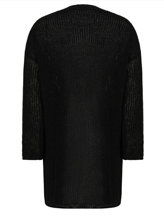 The Ribbed Knit Cardigan is made from a blend of 89% Acrylic and 11% Polyamide, ensuring durability and a comfortable fit. The mercerized finish gives the fabric a subtle sheen, enhancing its overall appearance. This high-quality material is not only soft but also breathable, making it suitable for various seasons.