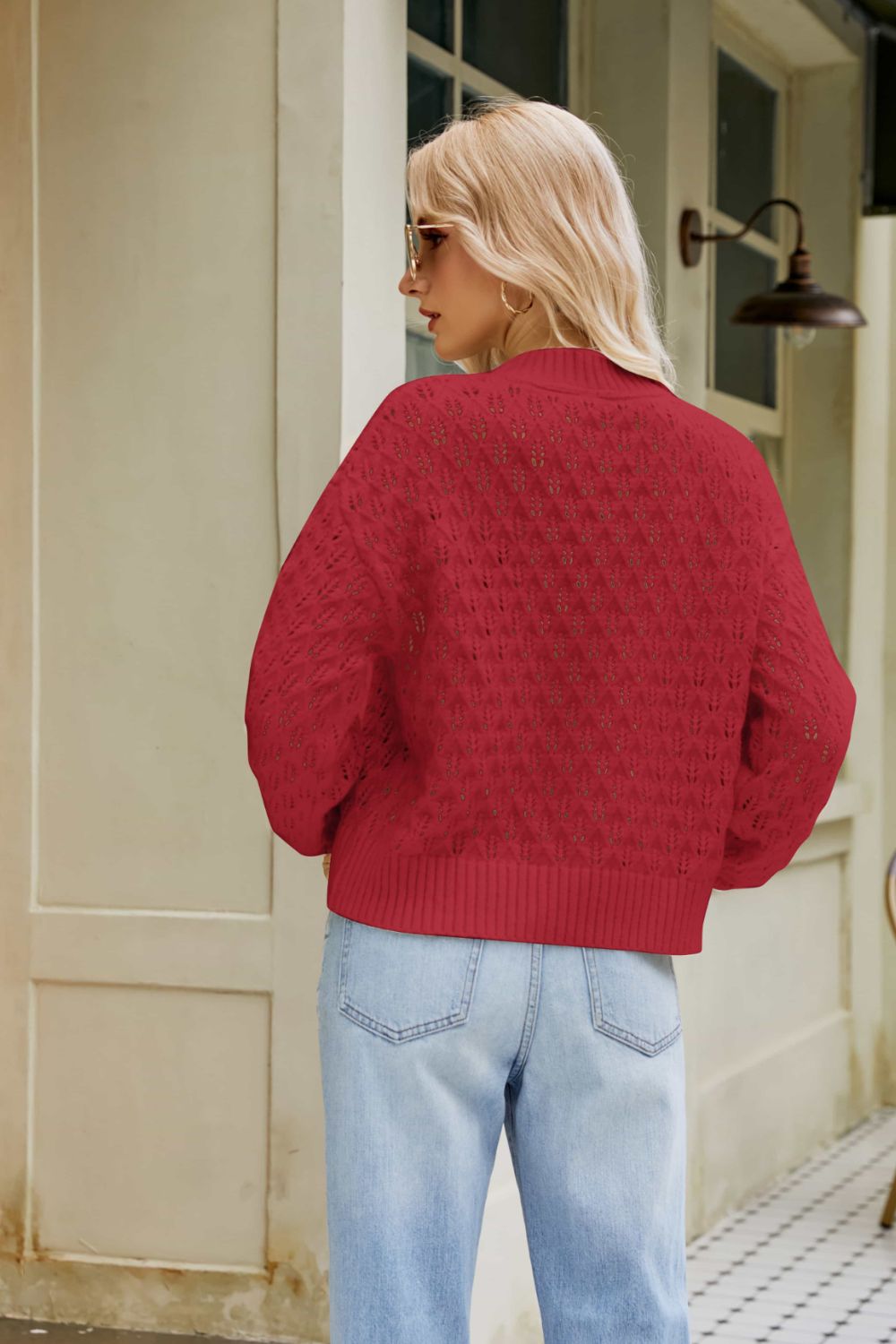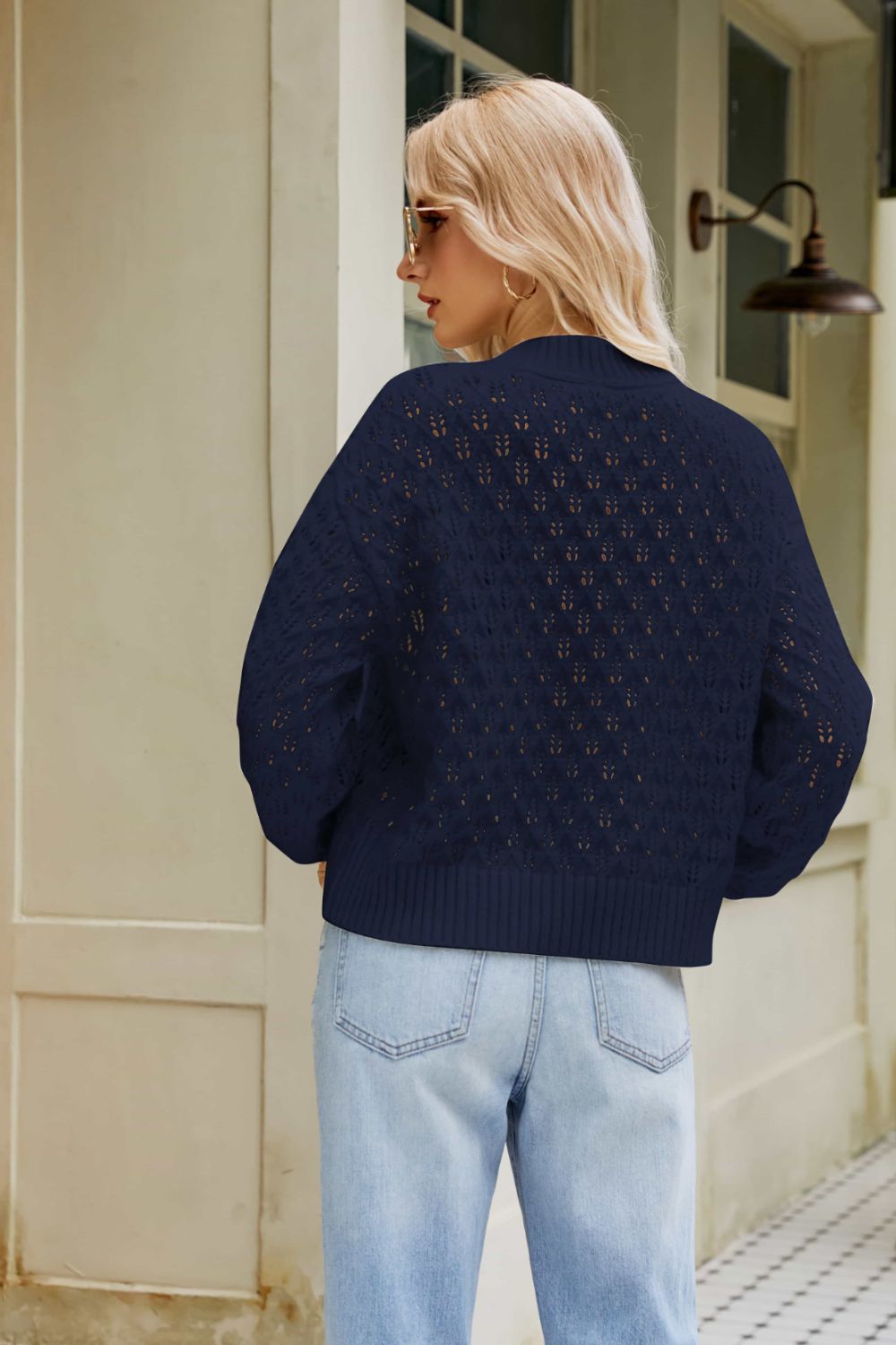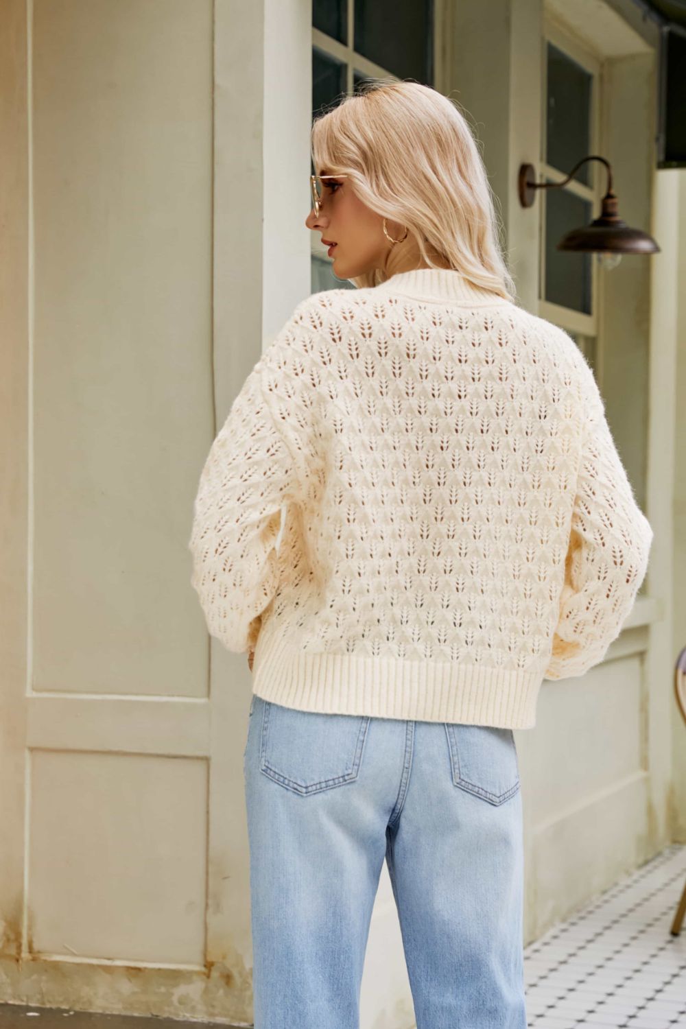 Ribbed Trim Openwork Crewneck Sweater in a studio setting, showcasing its stylish design and comfortable fit.