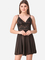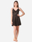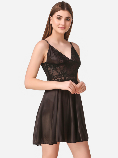 Romaisa Women's Satin Solid Black Above Knee Length Babydoll
