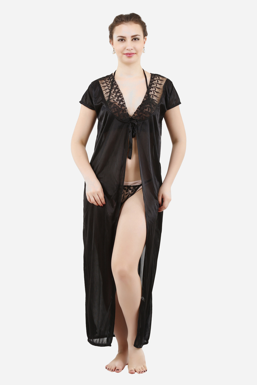 Shop from a wide range of nightwear from Romaisa. Super comfortable, This Romaisa Women's Satin Solid Maxi Length Nighty, Wrap Gown, Bra and Thong (Nightwear Set Pack of 4) is ideal for both sleep and relaxing time.