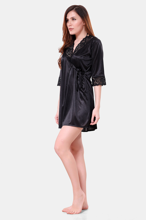 Shop from a wide range of nightwear from Romaisa. Super comfortable, This Romaisa Women's Satin Solid Above Knee Length Robe with Lingerie Set (Nightwear Set Pack of 3) is ideal for both sleep and relaxing time.