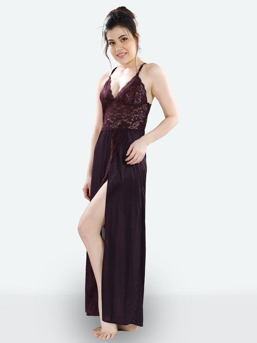 Shop from a wide range of nightwear from Romaisa. Super comfortable, This Romaisa Women's Satin Solid Maxi Length Nightgown is ideal for both sleep and relaxing time.