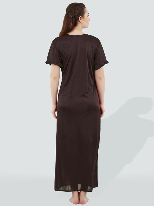 Dropship Romaisa Women's Satin Solid Brown Nighty with Robe