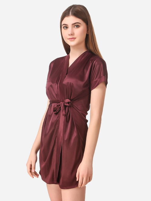 Shop from a wide range of nightwear from Romaisa. Super comfortable, This Romaisa Women's Satin Solid Above Knee Length Robe with Lingerie Set (Nightwear Set Pack of 3) is ideal for both sleep and relaxing time.