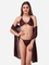 Romaisa Women's Satin Solid Brown Robe with Lingerie Set