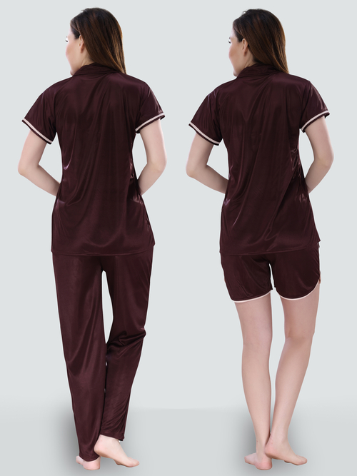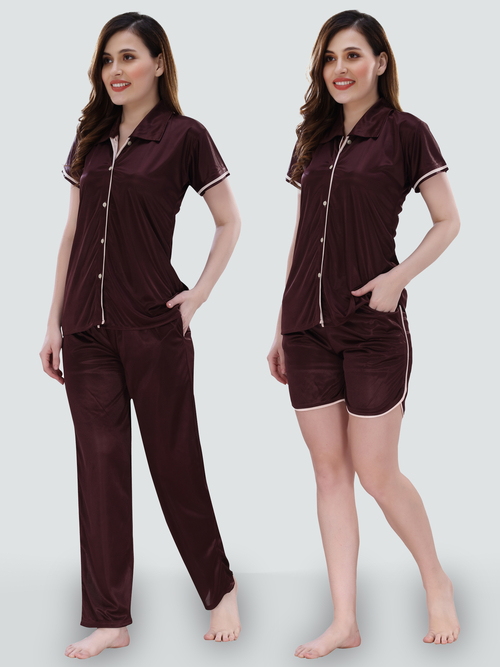Shop from a wide range of nightwear from Romaisa. Super comfortable, This Romaisa Women's Satin Solid Regular Length Top and Pyjama with Shorts (Nightsuit Set Pack of 3) is ideal for both sleep and relaxing time.