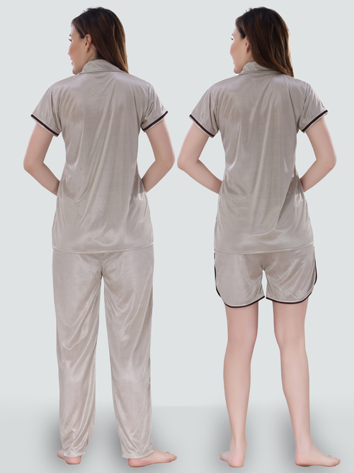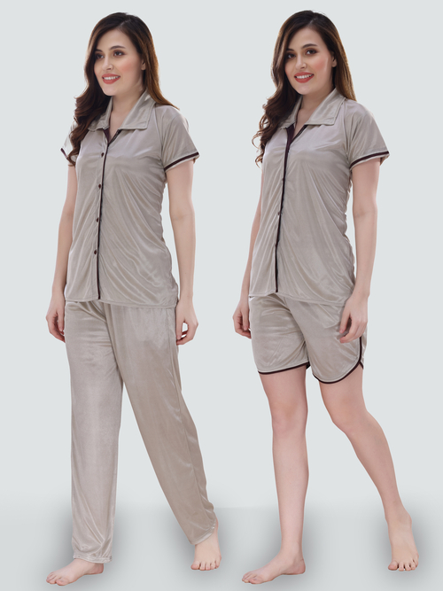Shop from a wide range of nightwear from Romaisa. Super comfortable, This Romaisa Women's Satin Solid Regular Length Top and Pyjama with Shorts (Nightsuit Set Pack of 3) is ideal for both sleep and relaxing time.