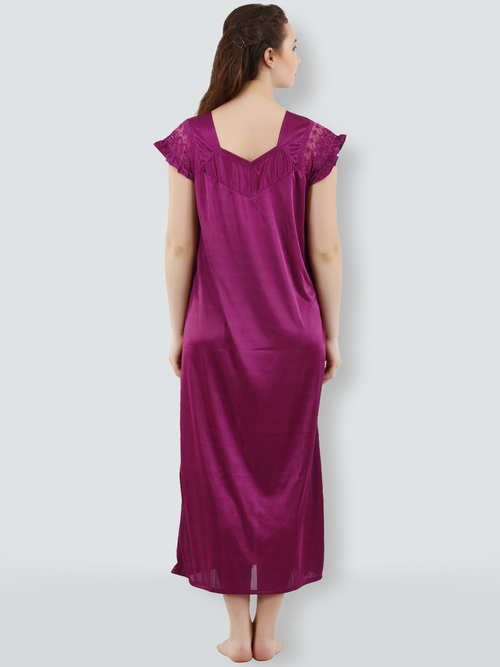 Dropship Romaisa Women's Satin Solid Magenta Maxi Length Nighty with Robe