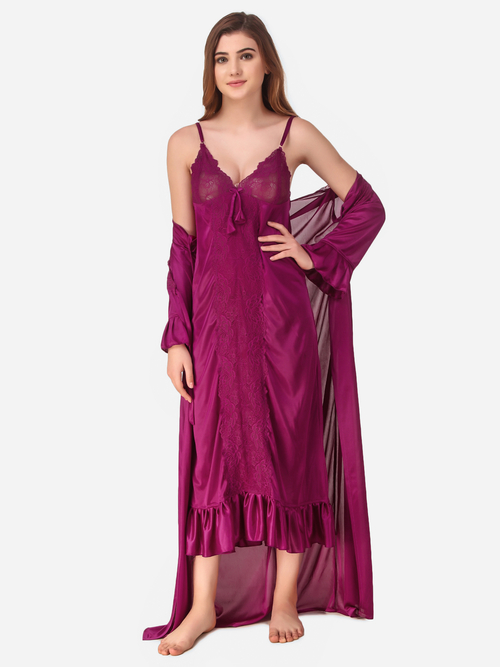 Shop from a wide range of nightwear from Romaisa. Super comfortable, This Romaisa Women's Satin Solid Maxi Length Nighty, Wrap Gown, Bra and Thong (Nightwear Set Pack of 4) is ideal for both sleep and relaxing time.