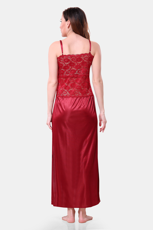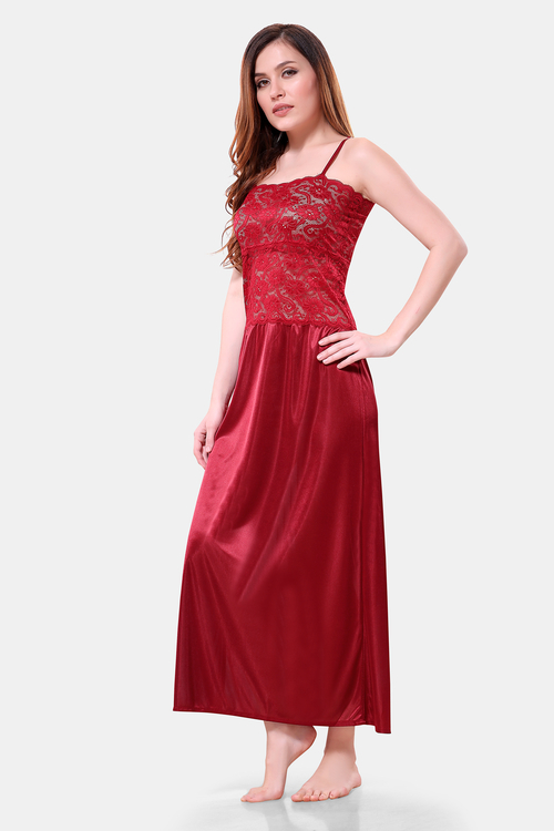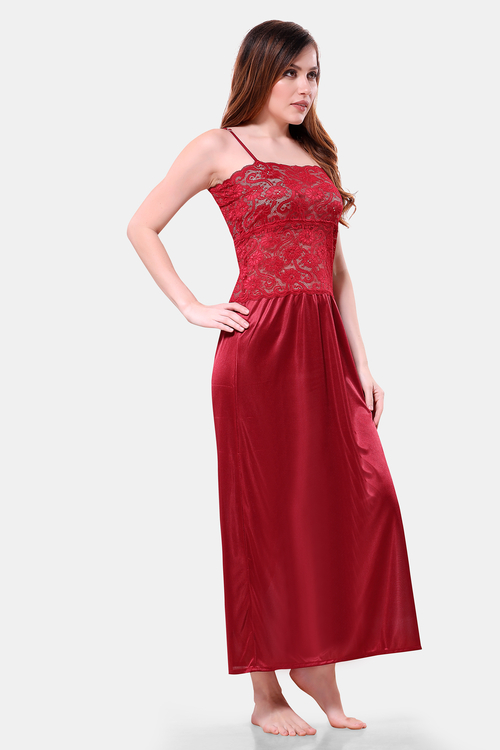 Romaisa Women's Satin Solid Maroon Maxi Length Nightgown