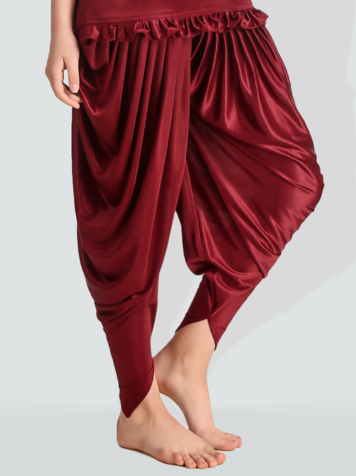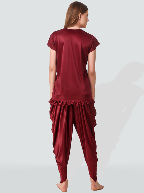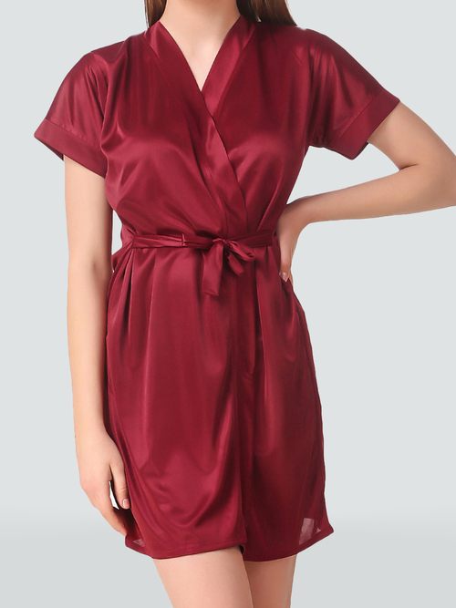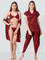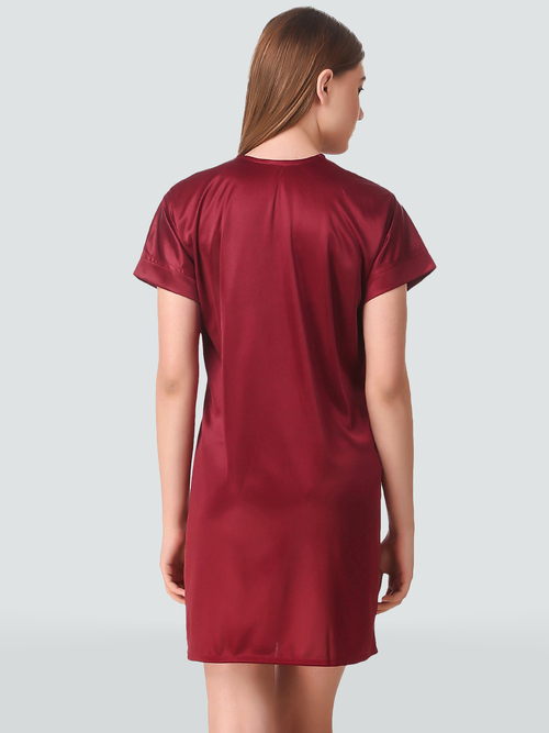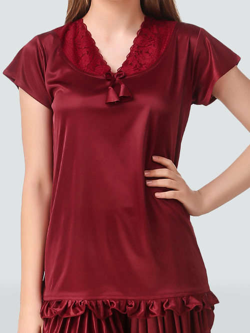 Romaisa Women's Satin Solid Maroon Nightwear Set ( Pack of 5 )