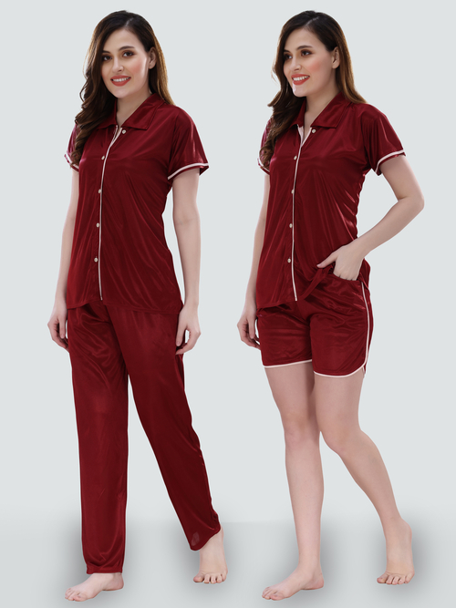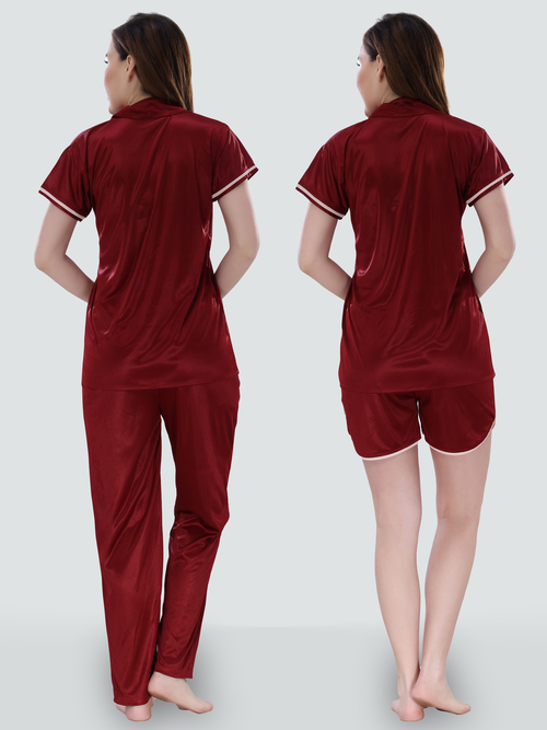 Shop from a wide range of nightwear from Romaisa. Super comfortable, This Romaisa Women's Satin Solid Regular Length Top and Pyjama with Shorts (Nightsuit Set Pack of 3) is ideal for both sleep and relaxing time.