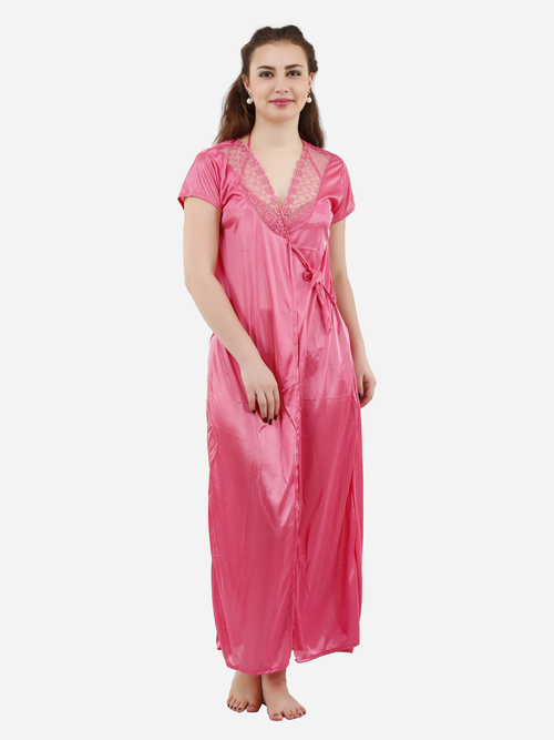 Shop from a wide range of nightwear from Romaisa. Super comfortable, This Romaisa Women's Satin Solid Maxi Length Nighty, Wrap Gown, Bra and Thong (Nightwear Set Pack of 4) is ideal for both sleep and relaxing time.