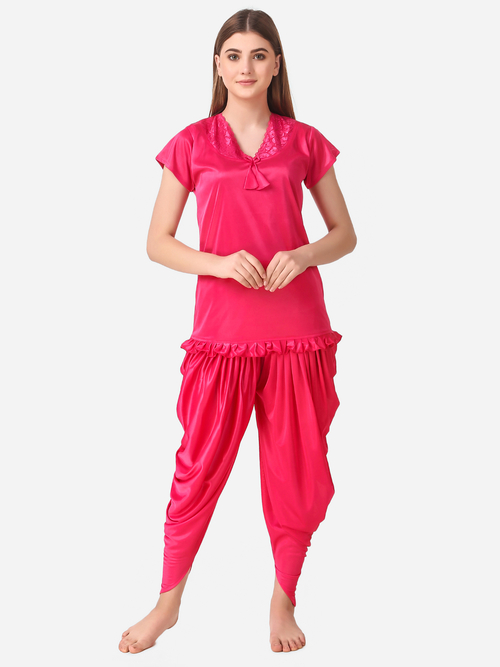 Romaisa Women's Satin Solid Pink Nightwear Set ( Pack of 6 )