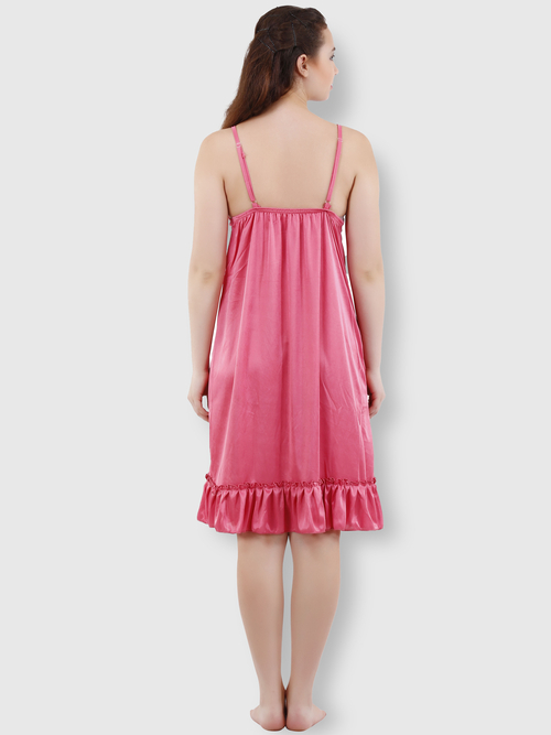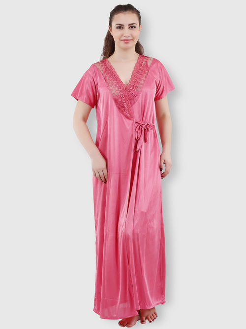 Dropship Romaisa Women's Satin Solid Pink Nighty with Robe