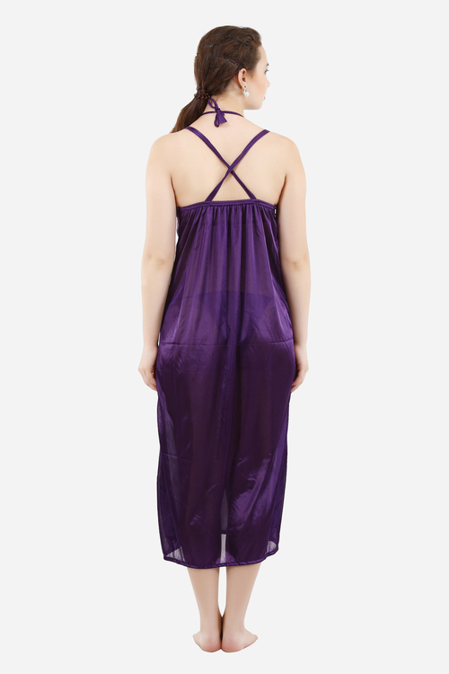 Romaisa Women's Satin Solid Purple Nightwear Set ( Pack of 4 )