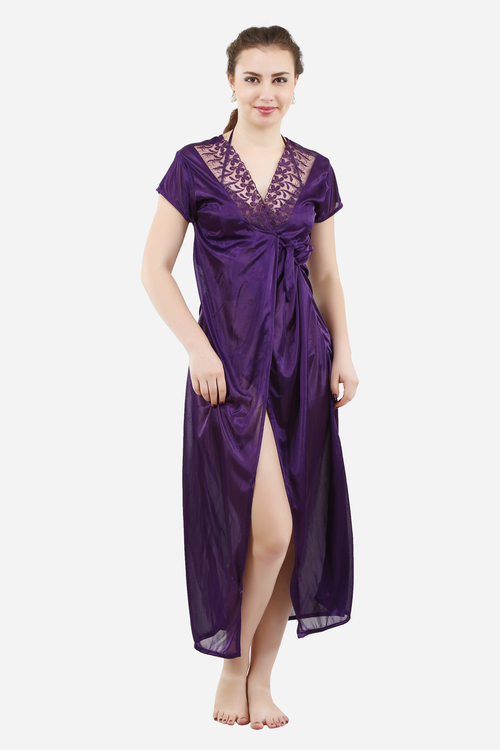 Dropship Romaisa Women's Satin Solid Purple Nightwear Set ( Pack of 4 )