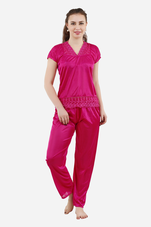 Dropship Romaisa Women's Satin Solid Violet Red Nightwear Set ( Pack of 6 )