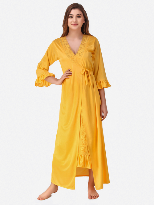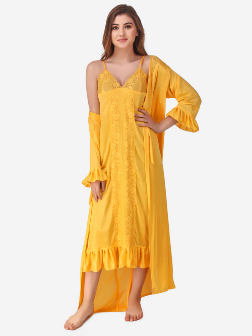 Shop from a wide range of nightwear from Romaisa. Super comfortable, This Romaisa Women's Satin Solid Maxi Length Nighty, Wrap Gown, Bra and Thong (Nightwear Set Pack of 4) is ideal for both sleep and relaxing time.