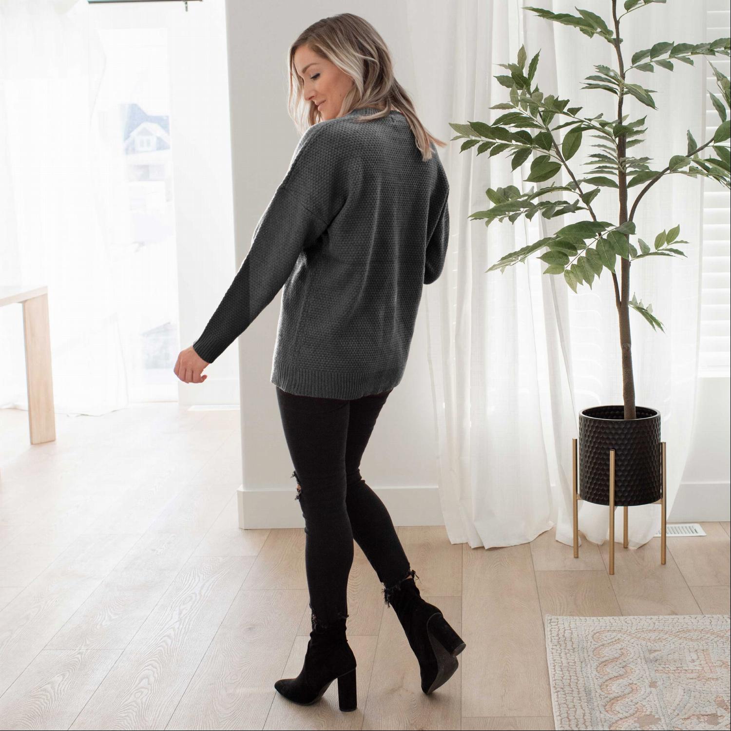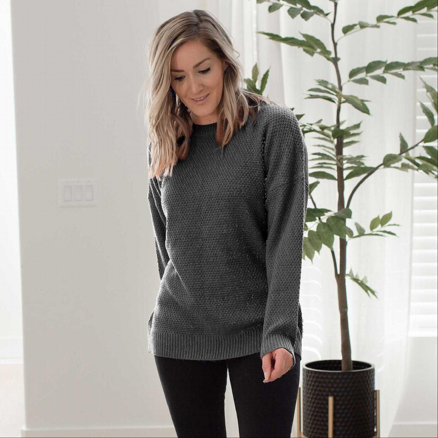 While the Round Neck Basic Sweater is ideal for fall and winter, it can also be worn during the spring months. Its lightweight fabric allows for breathability, making it suitable for transitional weather. Keep this sweater on hand to layer over your favorite tops or under jackets when the temperature drops.